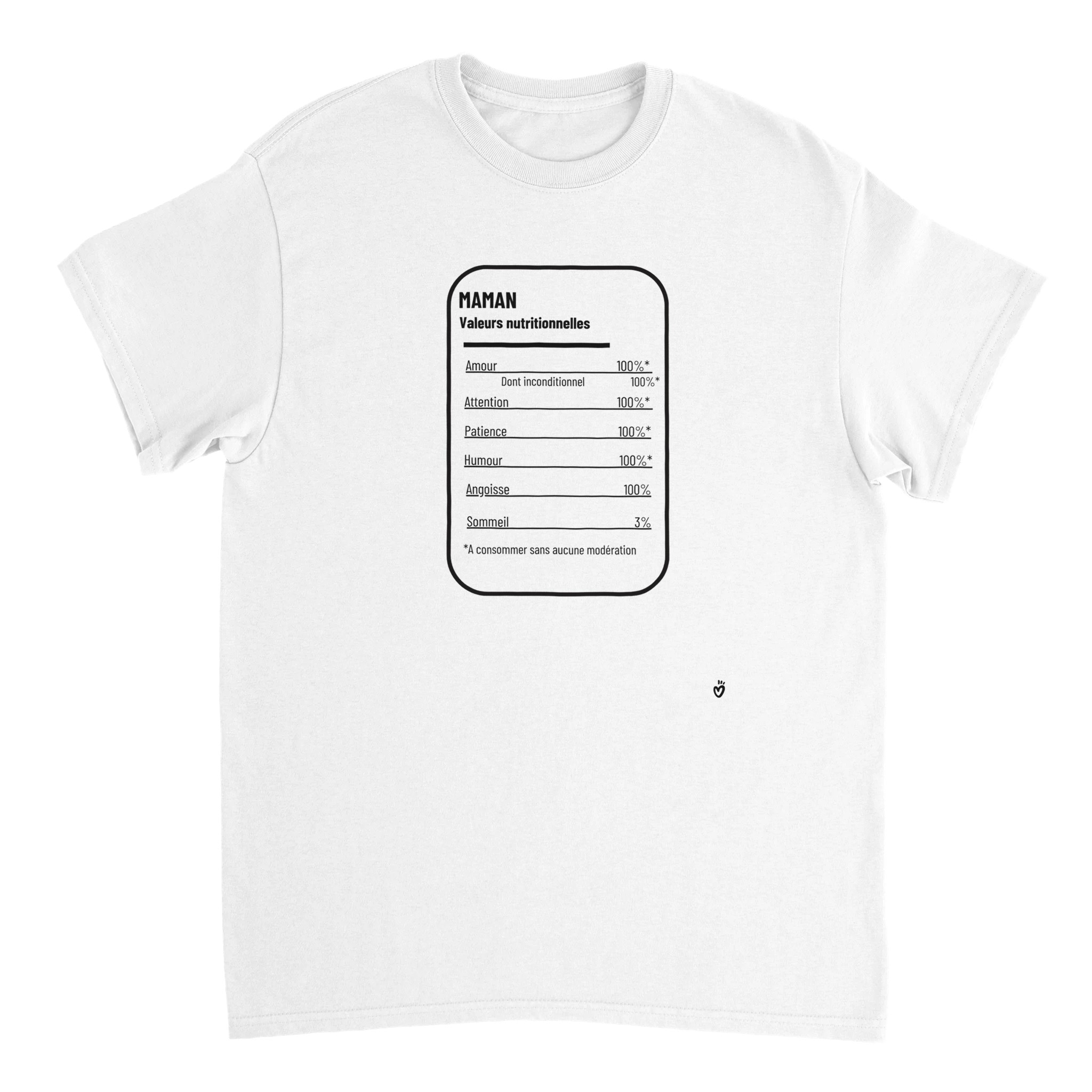 ❤️ T-shirt « Valeurs nutritionnelles d’une maman » – 100 % amour, 0 % repos ❤️